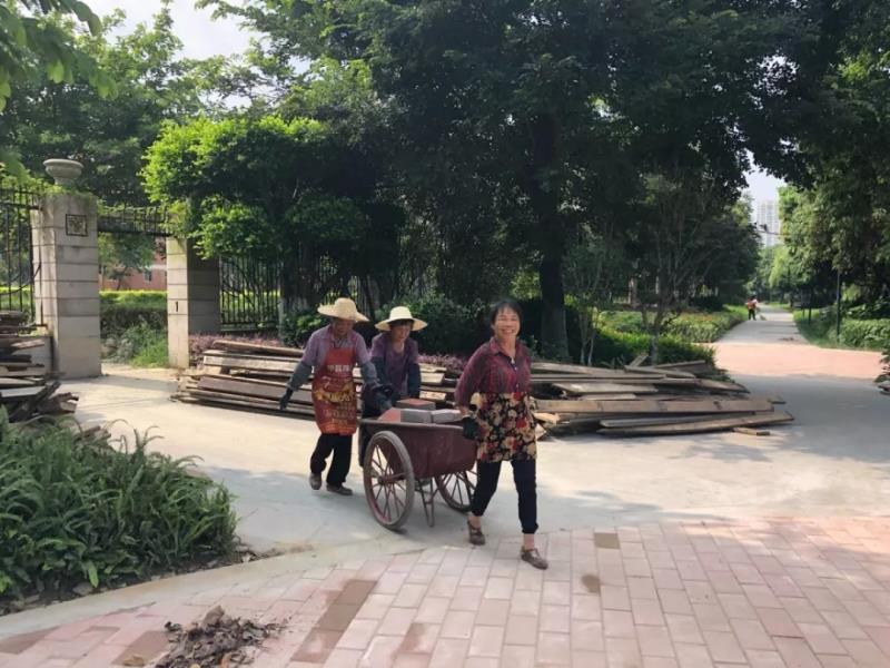 為確保小游園建設(shè),園林人不畏酷暑堅持在一線工作