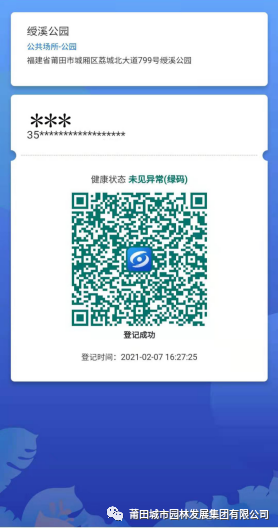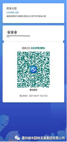 4.顯示“登記成功”。 三、入園后,請(qǐng)游客自覺做好防范措施,不聚集、不扎堆、有序游玩、保持1米以上安全距離。 四、若有異常情況,請(qǐng)配合工作人員轉(zhuǎn)移,并登記個(gè)人信息,按規(guī)定流程處置。 五、游客接待量超過公園最大承載量的75%時(shí),公園將實(shí)行限流管控,請(qǐng)自覺排隊(duì)等候。 六、若您有困難,請(qǐng)持智能手機(jī)前往公園入口處,工作人員、志愿者將給予幫助,方便順利入園。 七、園區(qū)游客較多,公園綠道自行車限行,造成不便,敬請(qǐng)諒解。