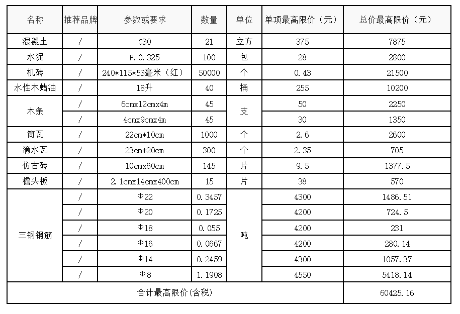 一、報(bào)價(jià)要求 (一)自行下載附件,按我公司發(fā)出的產(chǎn)品規(guī)格要求及單位數(shù)量填報(bào)完整資料,并加蓋公司印章后以圖片形式上傳至響應(yīng)文件。 (二)本批采購(gòu)設(shè)單項(xiàng)最高限價(jià)和總價(jià)最高限價(jià),報(bào)價(jià)時(shí),不可超出本批采購(gòu)的單項(xiàng)及總價(jià)最高限價(jià)范圍。 (三)本次采購(gòu)供應(yīng)商報(bào)價(jià)包含稅,開增值稅專用發(fā)票。 二、評(píng)標(biāo)方式:本項(xiàng)目采用總價(jià)最低價(jià)中標(biāo)法。(若中標(biāo)價(jià)相同,將采取隨機(jī)抽取方式選擇1家中標(biāo)單位)。 三、送貨方式: (一)供貨地點(diǎn): 赤溪古橋旁 (二)供貨次數(shù):分 1 次供貨。 (三)供貨時(shí)間:根據(jù)甲方通知給予送貨,3日內(nèi)須到貨并按照業(yè)主指定的位置堆放。 注:未滿足上述“報(bào)價(jià)要求”中任意一點(diǎn),將直接視為無(wú)效報(bào)價(jià)。中標(biāo)后,拒絕按中標(biāo)價(jià)格承接業(yè)務(wù)、不得以任何理由拒絕承接應(yīng)急采購(gòu)項(xiàng)目、未在通知要求時(shí)間內(nèi)不與發(fā)起部門簽訂合同,導(dǎo)致項(xiàng)目建設(shè)進(jìn)度滯后或影響材料供應(yīng),3年內(nèi)取消申請(qǐng)入庫(kù)資格。 聯(lián)系人:小蔡 聯(lián)系電話:0594-2259188 附件: 1、公開詢價(jià)報(bào)價(jià)表/upload/202303/17/202303171645333974.xlsx 2、材料樣圖/upload/202303/17/202303171645550771.rar